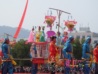 钱江源头灯文化2012年03月03日 17:51:31 % U t! {( j& q9 e/ ?9 | 一年一次的钱江源灯会早已过去,但灯会展现的文化氛围,至今令人难以忘怀。 钱江源头灯会是伴随灯日而至的。据说,最早的灯日是开化龙顶茶的发源地——齐溪大龙村。除夕,山农吃过年夜饭,家家户户量斗米,点燃红烛插在米斗里,噼里啪啦一阵鞭炮声过后,户主捧着“斗子灯”,喜气洋洋跨出家门,加入灯队绕村游行。灯日定在除夕,为的是送旧迎新,外村人是不去赶热闹的,所以有“女儿看不见娘家灯”之说。过了大年初一,山乡灯日接连不断,大道小径,人群熙来攘往,比今日赶集市还热闹。 千年古镇马金,人烟稠密的大村有灯日,偏僻的小山村也有灯日。随着村组织的变更,灯日也有些变革。翻开老皇历,姚氏大家族聚居一个大村庄,灯日从正月初八开始,直至十五结束,是开化时间最长的灯日。现在,马金姚家分为两个行政村,因此就有两个灯日。正月二十,原先是马金下街的灯日,如今,上下街村也各自择定了新的灯日。 马金镇的灯日很多,诸如姚一村正月初八,上街村、明塘坞村、大淤村十一,下街村十二,湖头村十三,姚二村十五等。霞山乡霞山、山头灯日是二十二,这是钱江源头最后的一个灯日。 灯日这天,所有亲戚朋友都来贺年观灯,各家盛设酒筵,殷勤接待。每有一客数主,忙得主人四处找客,出现你拖我拉,“请客容易,揽客难”的热烈场面。纯朴的山乡百姓,热情好客,礼尚往来,有了灯日,亲朋好友来得集中,场面显得热闹,交流信息方便,开支反又节省,更不用天天忙于待客应酬。 “火树银花不夜天”,灯日观灯喜洋洋。钱江源头灯会众彩纷呈,各具特色,沉淀着深厚的民族传统文化底蕴,表现了山区农民粗犷豪爽的思想感情。 初七是齐溪一个小村的灯日。夜幕降临,山农把长条板凳翻个身,让四条凳脚朝天,前后点燃红烛,然后肩扛一条条板凳排成长龙,穿村而行,锣鼓喧天,热闹非常,这叫“龙角灯”。大村庄灯日那天,天刚蒙蒙亮就听见阵阵敲大锣声音,这叫“开灯路”。吃了早饭,便出迎板龙灯,这叫“迎白灯”。“白灯”板数略少,且不点燃蜡烛,为晚上迎红灯先作演习而已。远道宾客观赏了“白灯”便赶回家。 板龙灯多数村皆有,板数因村户而定,大村一二百板不等。灯板两头凿有圆孔,中插木桩连接,转弯抹角十分灵活。灯板上设置三盏或四盏灯,罩以灯笼,内点蜡烛。板上间插两面三角龙旗,旗上彩绘龙凤图像,或题宣传标语、诗句、灯谜。龙头龙尾用樟木雕刻,流金溢彩,张牙舞爪,显得威武无比。 入夜,龙板灯出迎,灯球前行,鼓乐随后,时而缓游,时而疾行,时而盘旋,时而扼角,在夜色弥漫的村野中宛如一条巨龙,行至河边,倒映水中,灯火辉煌,翻江倒海,陆上水中双龙翻腾,煞是壮观,伴以锣鼓声、唢呐声、鞭炮声、喝彩声,构成一幅“妙夺诸方,目从未观”的壮丽景色。 过去,内外徐村除了龙板灯、花灯,还有罕见的狮舞灯。狮子用篾扎成,腹下安两根短木,腹内点燃蜡烛。舞狮时,灯彩球在前引逗,舞狮人左右手各执短木翩翩起舞,或进或退,或奔或蹲,或跃或立,一对对双狮戏彩球,摇头摆尾,绕村串巷,欢声笑语,此起彼落。霞山灯会,白天踩高跷,晚上迎花灯。高跷竹马源于跳竹马,高于跳竹马,为明代少保吏部尚书兼谨身殿大学士商辂和霞山村祖先郑旦公组织首创。它充分利用三度空间位置,配有八匹神马,饰李世明、李治、徐茂公、尉迟公、秦叔宝、程咬金、薛仁贵、罗成等面谱,以慢步、小步冲跳、旋转等舞步进行,堪称别具一格。 最为壮观的是姚家灯会,它不仅灯日长,而且灯类繁多,有花灯、扛灯、布龙灯、板龙灯,还有吉祥动物灯;狮、象、鹿、麒麟、双凤朝阳等。 花灯工艺精湛,颇受赞赏。它用篾制扎成一个如水缸大的花钵,花钵内置以曲杆弯枝的小树,枝条上饰绿叶、花朵。花灯名目各异,别具匠心,有“凤穿牡丹”、“喜鹊栖梅”、“孔雀开屏”、“八哥戏竹”等,光彩动人,灿烂夺目。 扛灯又名宫灯,是宫廷彩灯的一种,始于唐代,盛于宋元。马金姚家村有扛灯,流传两种说法:其一,史载,大舜生于姚墟,因以为姓。姚氏乃舜之后裔,故获迎宫灯之殊荣;其二,史曰,唐开元四年(公元716年),山东蝗灾,官民焚香拜祝,坐视蝗虫食苗不敢捕。宰相姚崇派御史分道灭蝗,设夜火,坎其旁,且焚且埋。汴州刺史倪若水迷信天灾,拒不应命。姚崇责之曰:“坐视蝗虫食苗,忍而不救,粮食无收,刺史将如之何?”姚崇下令灭蝗,得死蝗十四万石,山东之民,免为饿殍。百姓自发举行隆重灯会庆祝,其中就有扛灯。嗣后,姚氏后裔为纪念先贤,也仿制扛灯。 扛灯以“福禄寿禧、吉祥如意”八个字为主题,以传统戏剧故事为内容,以人物形象为主体,分台脚、台面、人物三部分组合而成。台脚底架用木料做,其余均用蔑片扎骨架。台面即戏台,四周框边饰以彩色纸剪刻图案。人物头像制作先用樟木模型糊纸,然后取出木模,在空壳人头面上画脸谱,戴冠穿袍,形象逼真,活灵活现。一台扛灯一台戏,如“天官赐福”、“文王拉车”、“桃园结义”、“九世同居”、“郭子仪拜寿”等,人物形象栩栩如生,堪称一绝。两人扛一台,每台扛灯尾随一班吹鼓手,一路吹吹打打,游遍全村,直至灯会结束,人流欢散。 “文革”期间,把民间传统文化活动当作“四旧”破除,从此群众不敢言灯会事。直到1983年农村大改革,农民欢天喜地又兴灯会,可惜一些能工巧匠的老艺