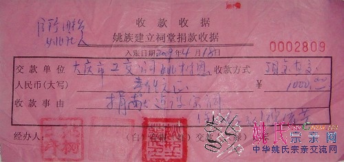 4.18号来自大庆的姚树恩宗亲为巨野家庙重建捐款1000元。% Y& i: F9 q5 [( D