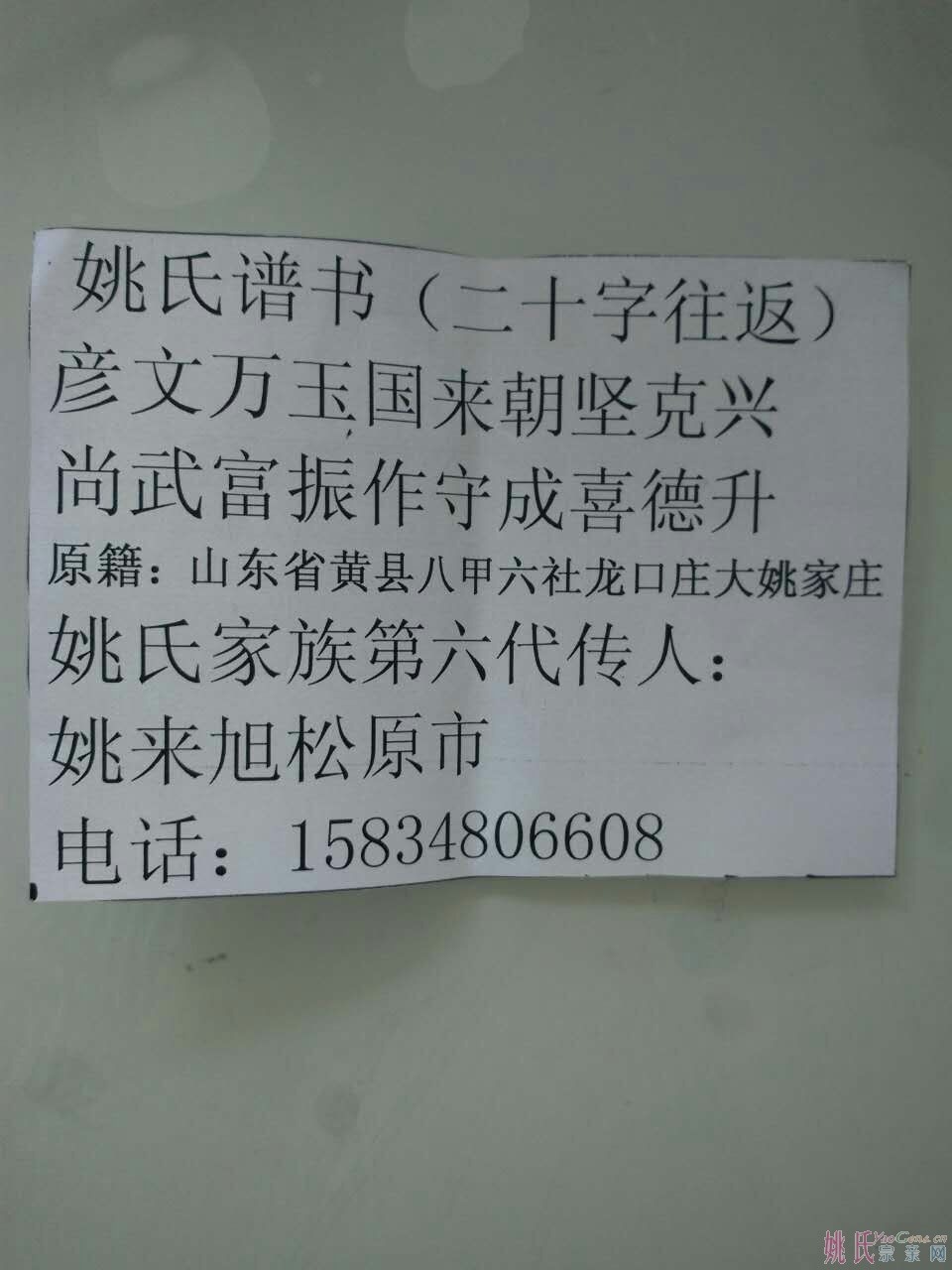吉林姚庆财 发表于 2014-6-4 08:503 r% v$ ~+ k7 j: D1 v* I 姚网,姚庆财,QQ群中得到的东北宗亲家族信息 |